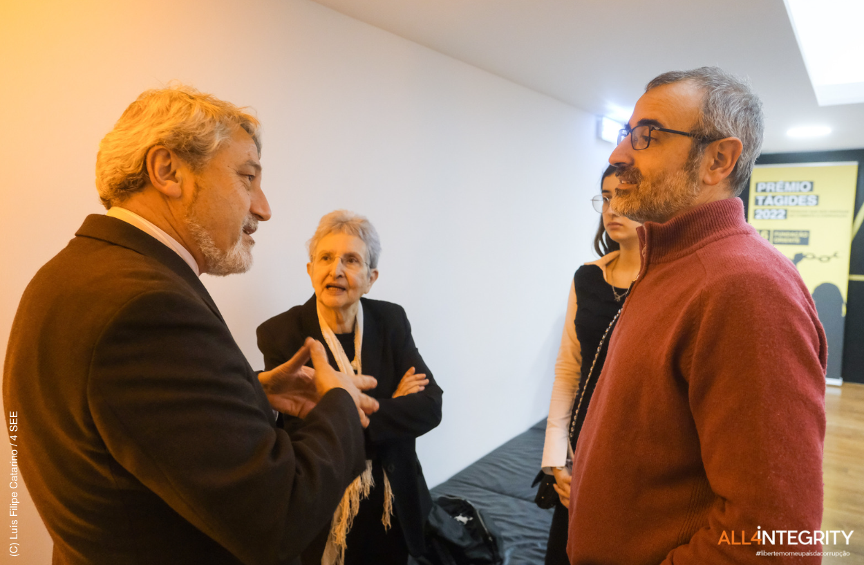 On December 16, 2022, in the auditorium of the Orient Museum in Lisbon, people who inspire us in the fight against corruption were recognized, celebrated, and awarded for the second time. In this, the 2nd edition of the Tágides Award, the winners were Eduardo Figueiredo, Helena Roseta, João Cravinho, José António Cerejo, and Luís Rosa.